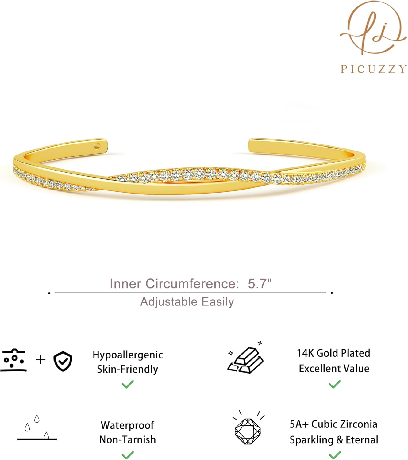 10 reviews for 14K Gold Plated Cuff Bracelets for Women Trendy, Silver Plated Bangle Bracelets for Women Dainty Bangles Cubic Zirconia Adjustable Wave Bracelet Fashion Jewelry Gift for Women