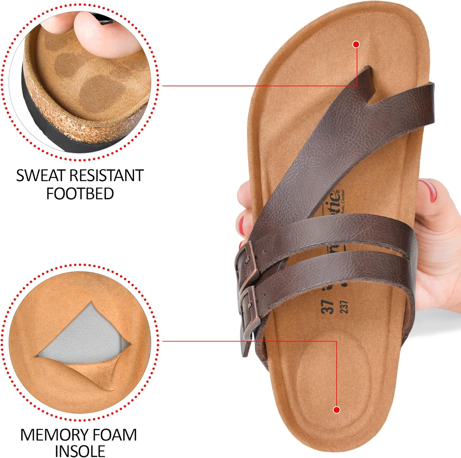 AEROTHOTIC Womens Strappy Slip-On Modern Memory Foam Cushion Footbed Outdoor Adjustable Buckle Cork Footbed Slides for Sandals with Comfortable Arch Support