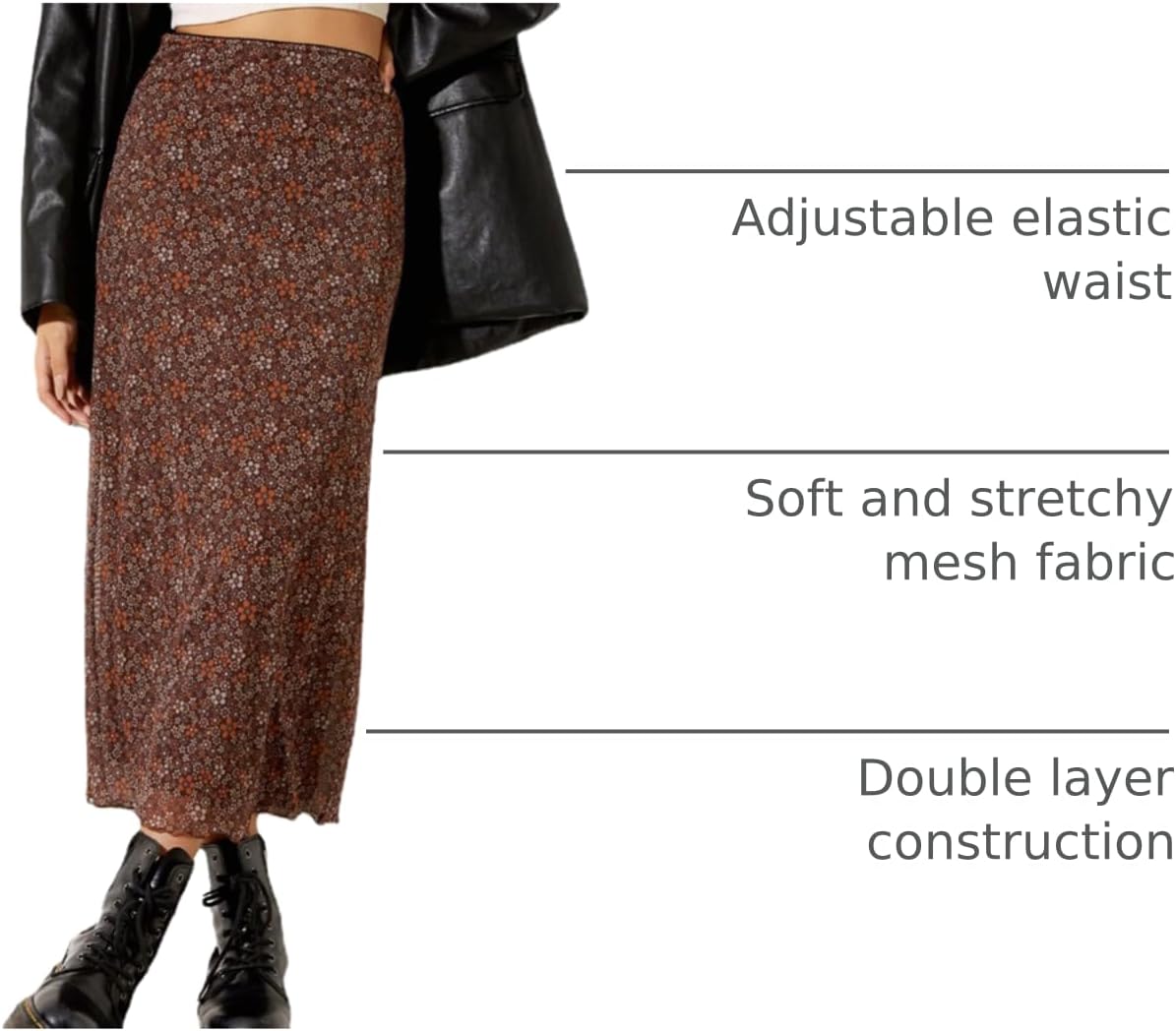 9 reviews for Avanova Women Ditsy Floral Bohemian Mesh Midi Skirt Elastic High Waisted Flowy Summer Long Skirt