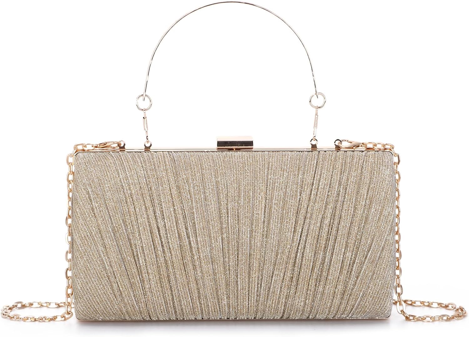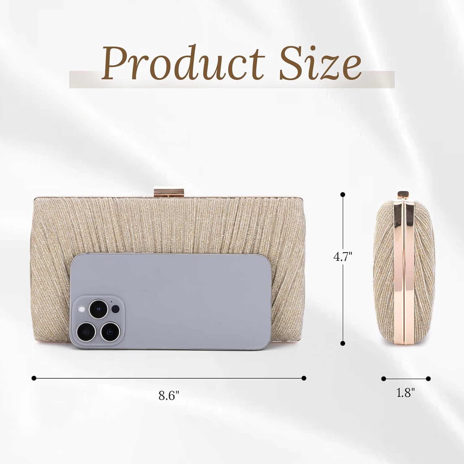 8 reviews for Freie Liebe Clutch Purses for Women Formal Evening Bag with Chain Sparkling Pleated Handbag for Cocktail Wedding and Party