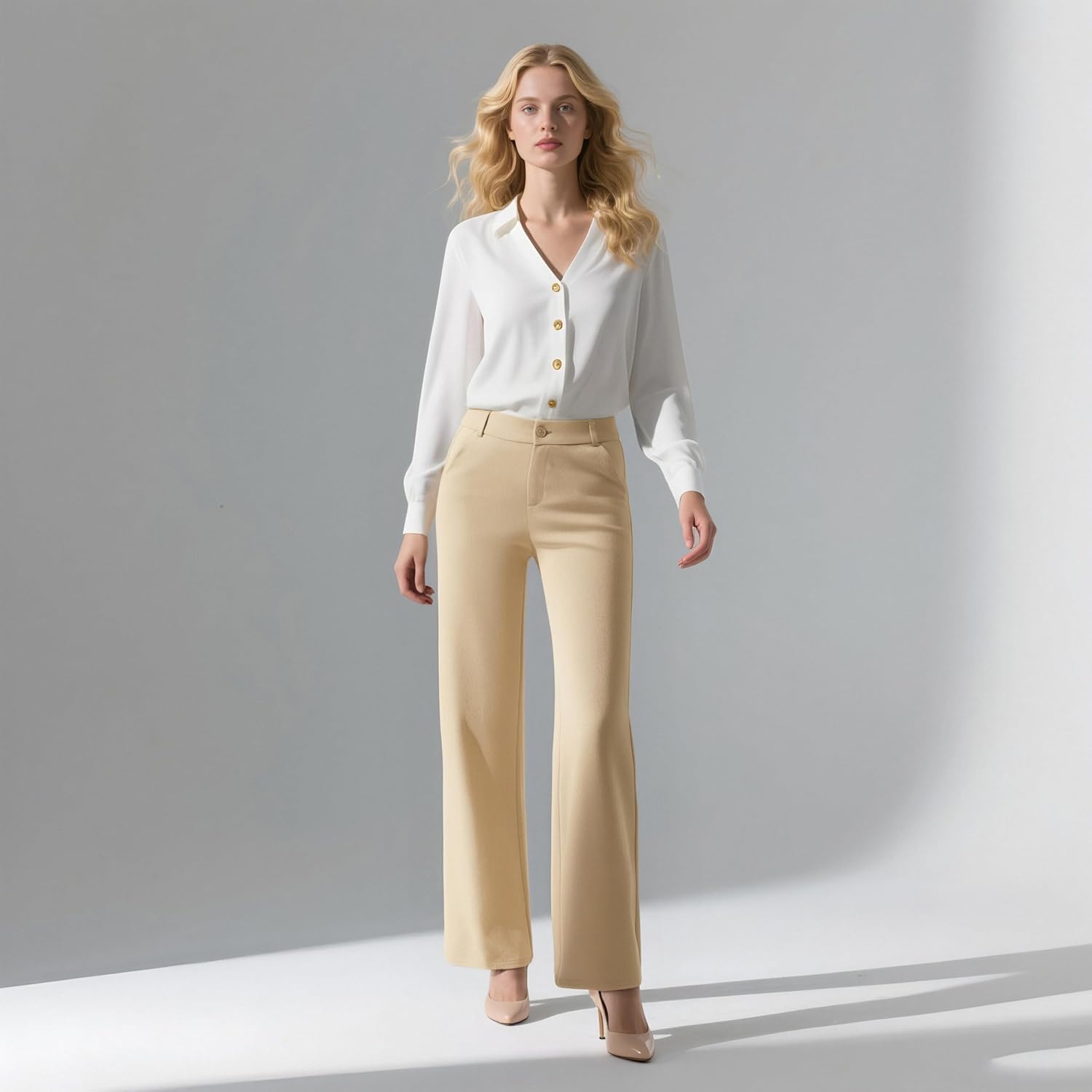 Make these Women’s High Waisted Wide Leg Pants a staple in your wardrobe, available in both wide leg dress pants and straight leg trousers for women.