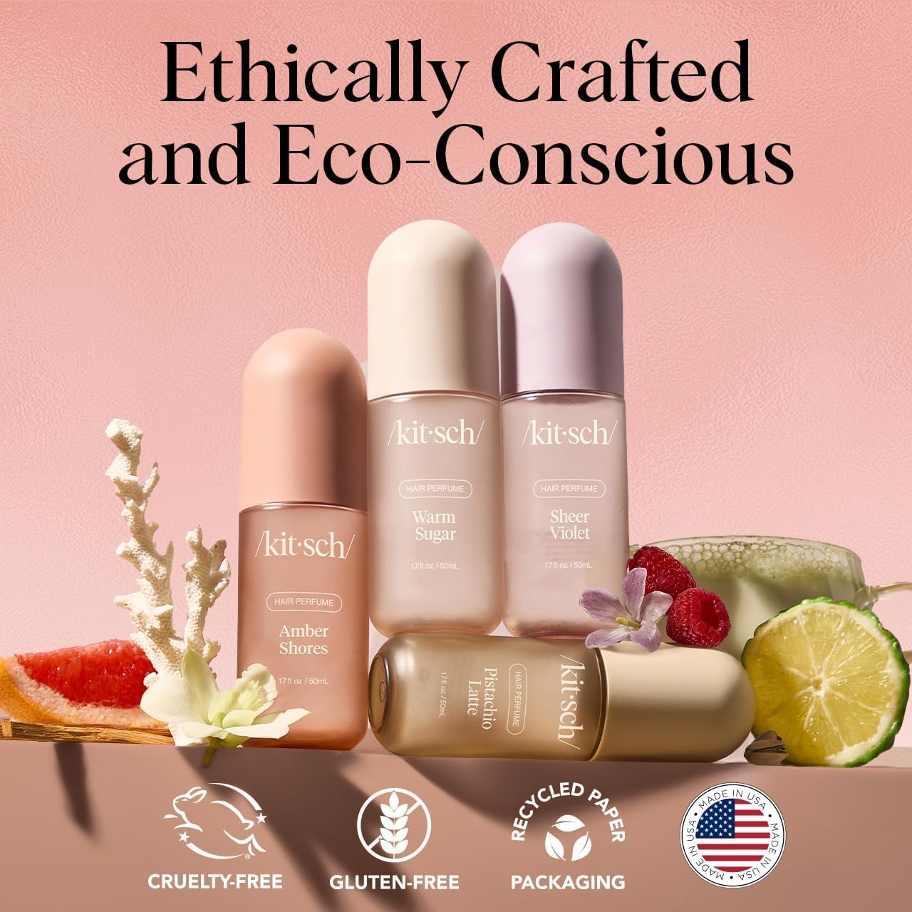 CLEAN INGREDIENTS, CONSCIOUS FORMULA: Our Kitsch Hair Perfume is vegan, cruelty-free, and free from phthalates, parabens, PFAS, and synthetic CMRs. The 50mL size is ideal for on-the-go freshness, and the bottle is made with 30% PCR material—because great hair days shouldn’t come at the planet’s expense.