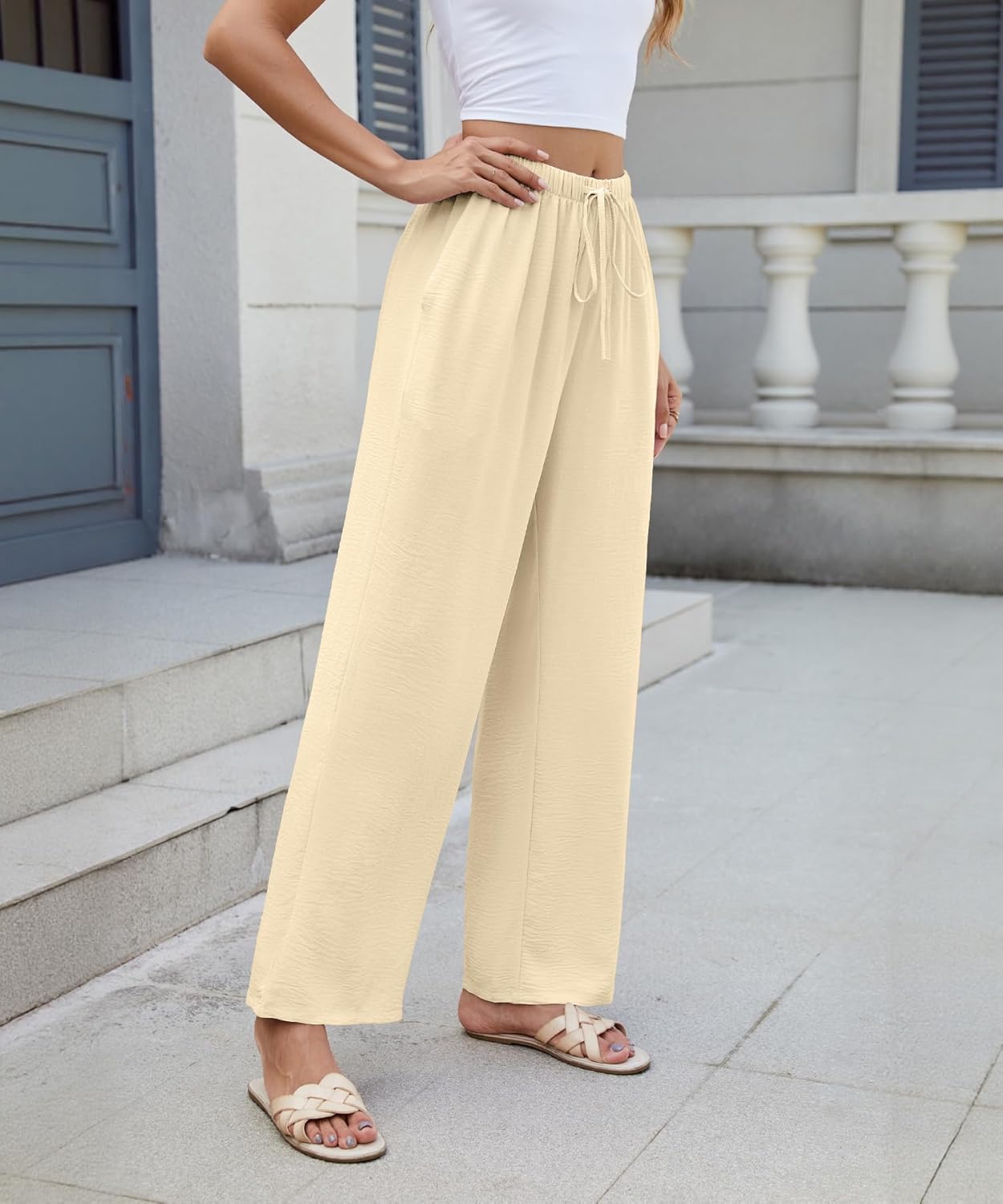 8 reviews for NILOUFO Women Summer Casual High Waist Wide Leg Pants Fashion Lightweight Flowy Boho Beach Trousers with Pockets