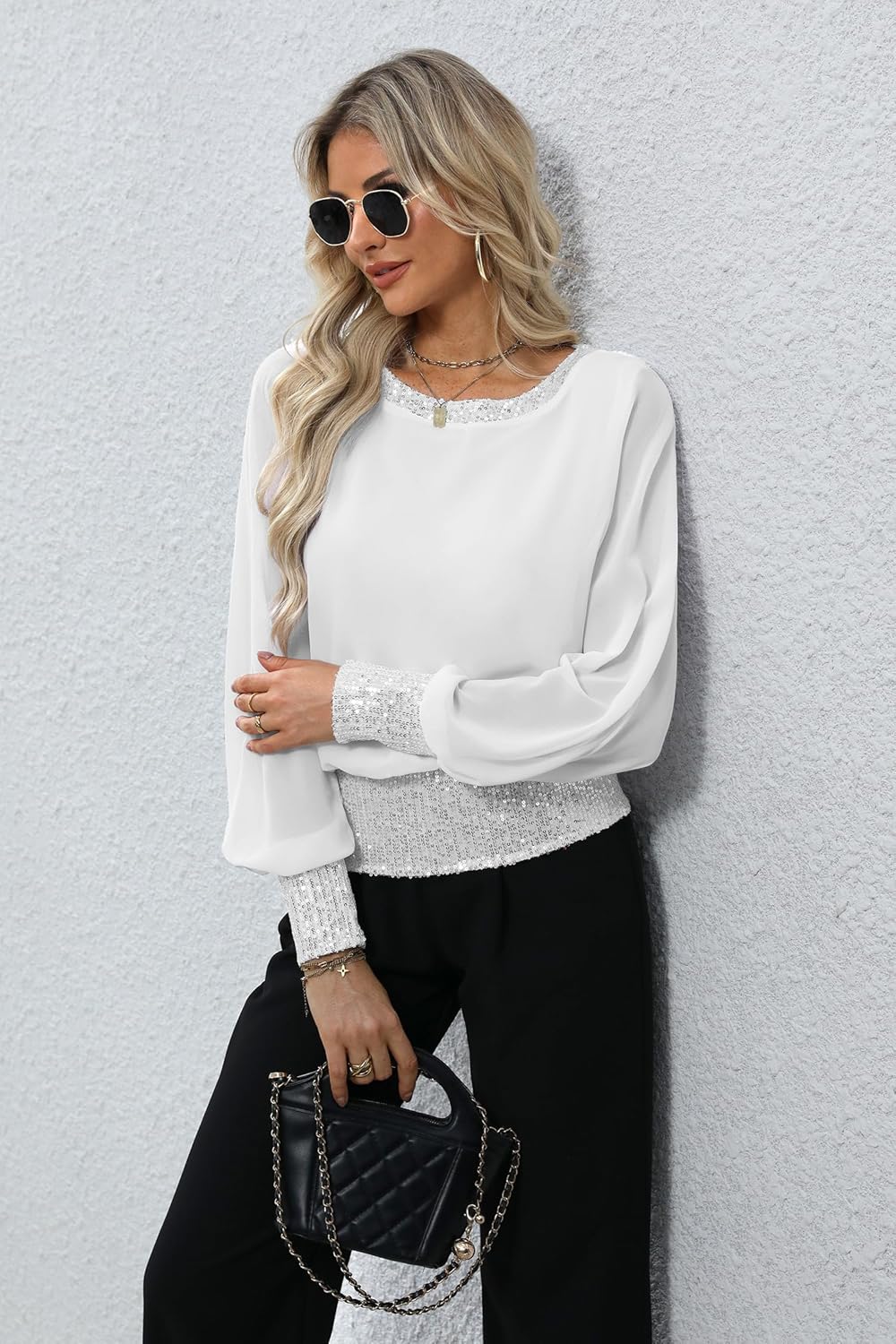 4 reviews for Women Winter Sequin Formal Dressy Top Shimmery Glitter Beaded Blouse White L