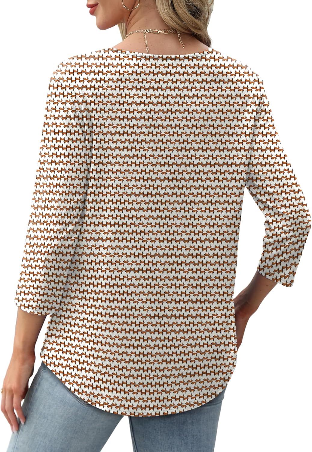 XIEERDUO 3/4 Length Sleeve Womens Tops Tunic Tops for Women Loose Fit Curved Hem
